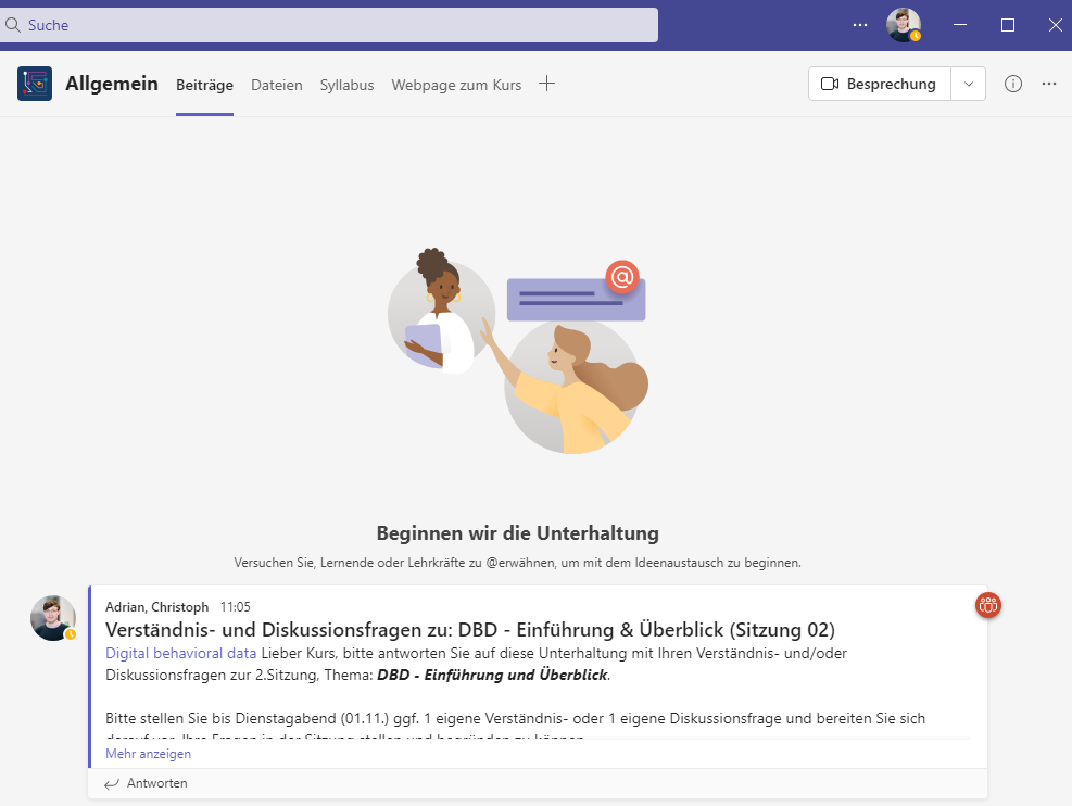 Fragen, MS Teams & alternativer Seminarplan