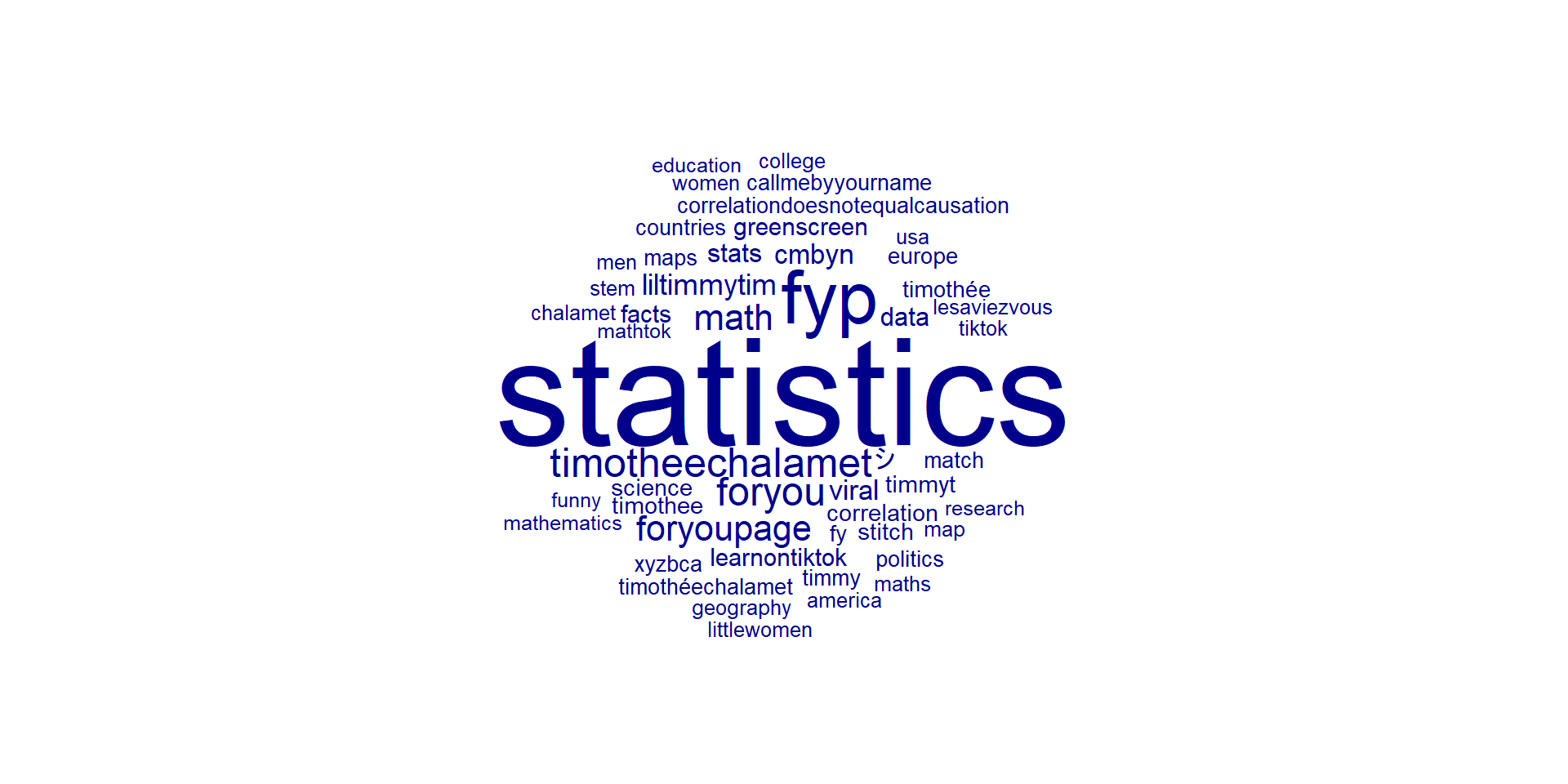 [1] "stitch" "statistics" "staticstics" "fyp" "foryoupage"